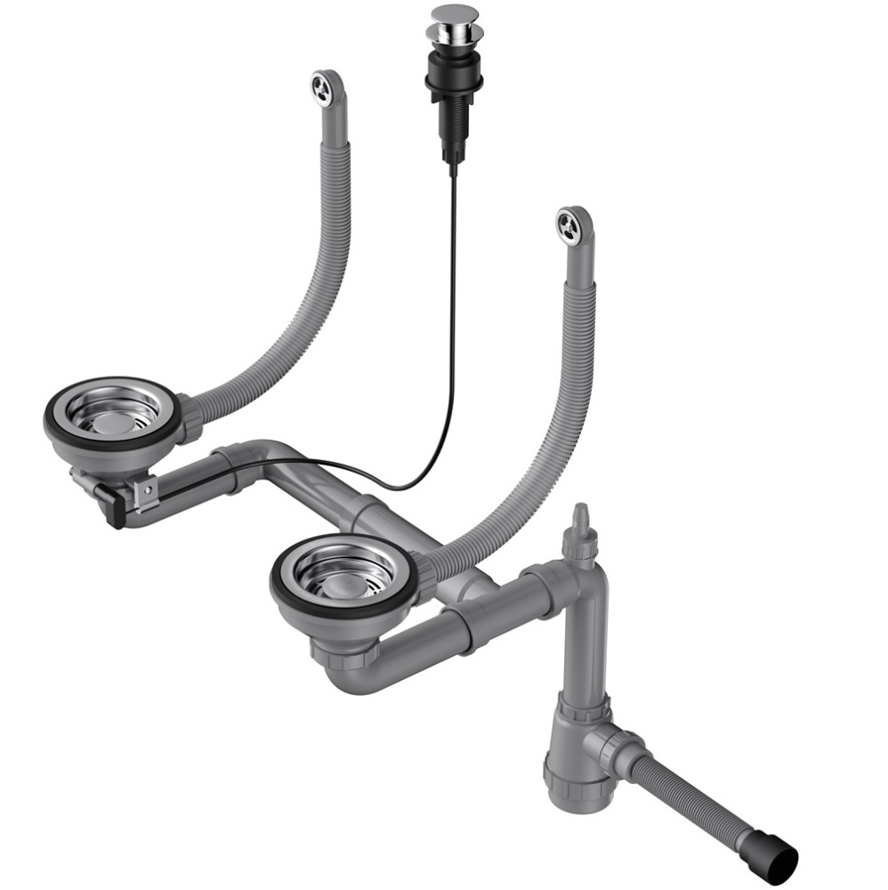 Арматура с клапаном-автоматом для двухчашевых моек с круглыми переливами. Подходит для моек Omoikiri Bosen 59-2, Bosen 80-2.