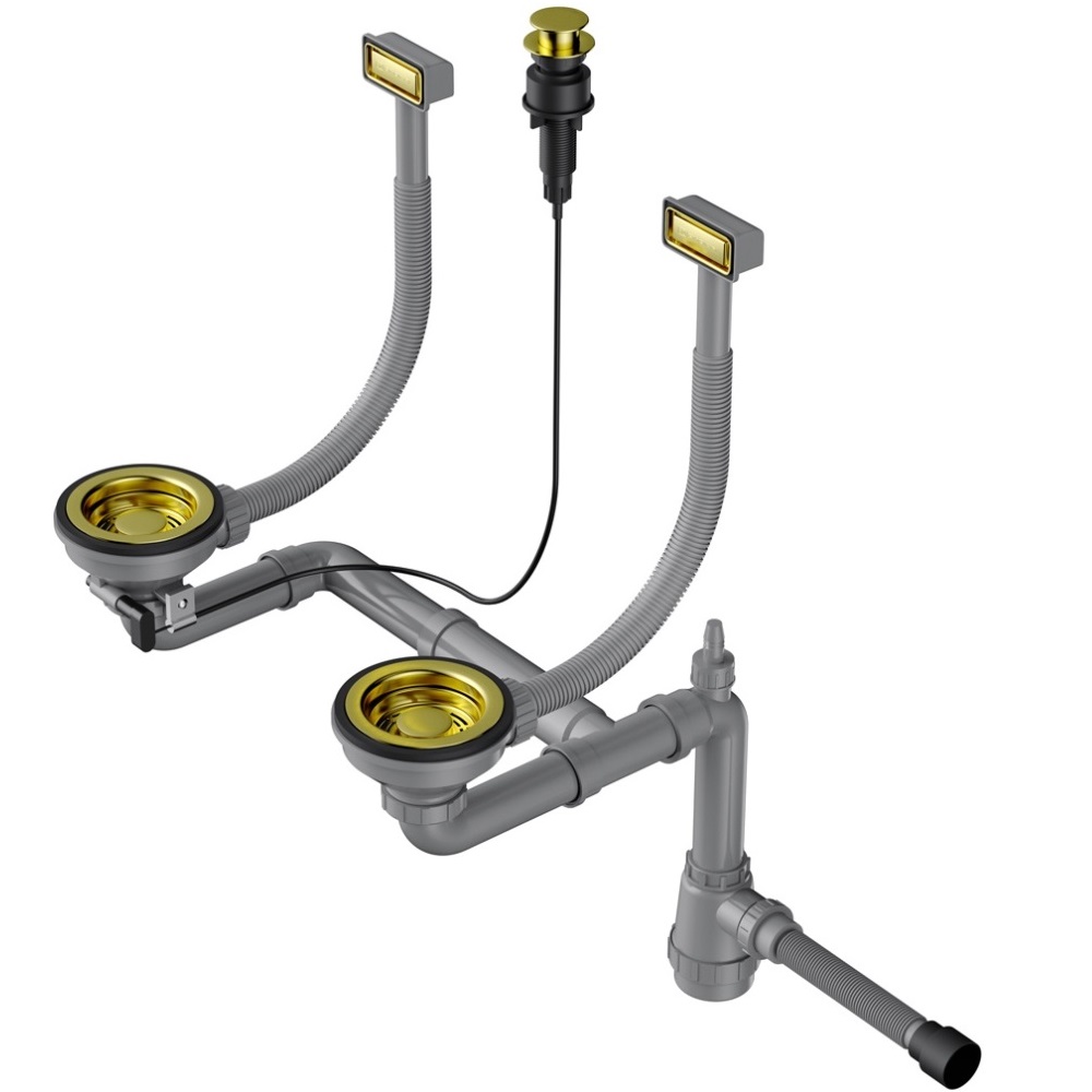 Арматура с клапаном-автоматом для двухчашевых моек с прямоугольными переливами. Подходит для моек Omoikiri Akisame 100-2, Akisame 78-2, Akisame 60-2, Taki 86-2.