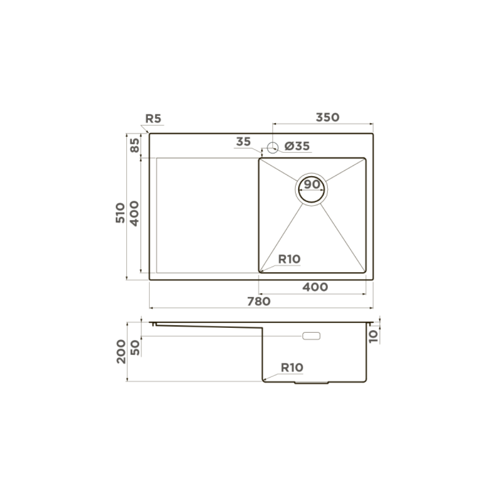 Мойка кухонная Omoikiri из коллекции Akisame 78-GM-R имеет размеры 780х510 мм., изготовлена из нержавеющей стали. Форма — прямоугольная, одна чаша с отверстием для смесителя. Сифон в комплекте. Ширина чаши 40. Врезной монтаж. Имеется крыло.