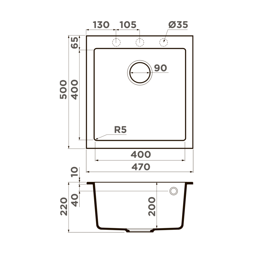 Мойка кухонная Omoikiri из коллекции Bosen 47-ES имеет размеры 470х500 мм., изготовлена из искусственного гранита. Форма — прямоугольная, одна чаша без отверстия для смесителя. Сифон в комплекте. Ширина чаши 40. Подстольный монтаж.