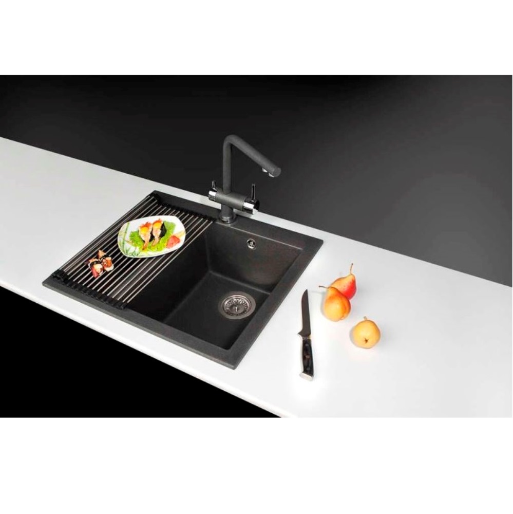 Мойка кухонная Omoikiri из коллекции Bosen 57-BL имеет размеры 570х500 мм., изготовлена из искусственного гранита. Форма — прямоугольная, одна чаша без отверстия для смесителя. Сифон в комплекте. Ширина чаши 50. Подстольный монтаж.