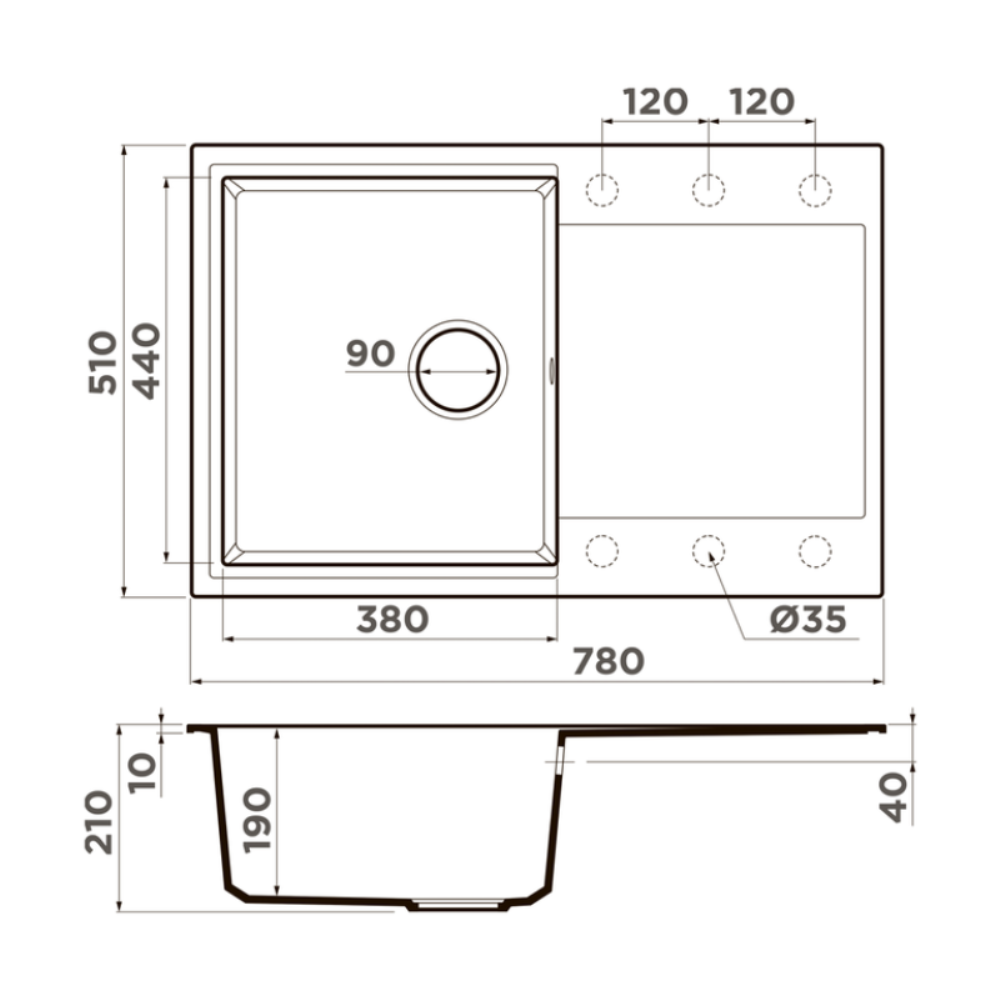 Мойка кухонная Omoikiri из коллекции Daisen 78-PA имеет размеры 780х510 мм., изготовлена из искусственного гранита. Форма — прямоугольная, одна чаша без отверстия для смесителя. Сифон в комплекте. Ширина чаши 38. Врезной монтаж. Имеется крыло.