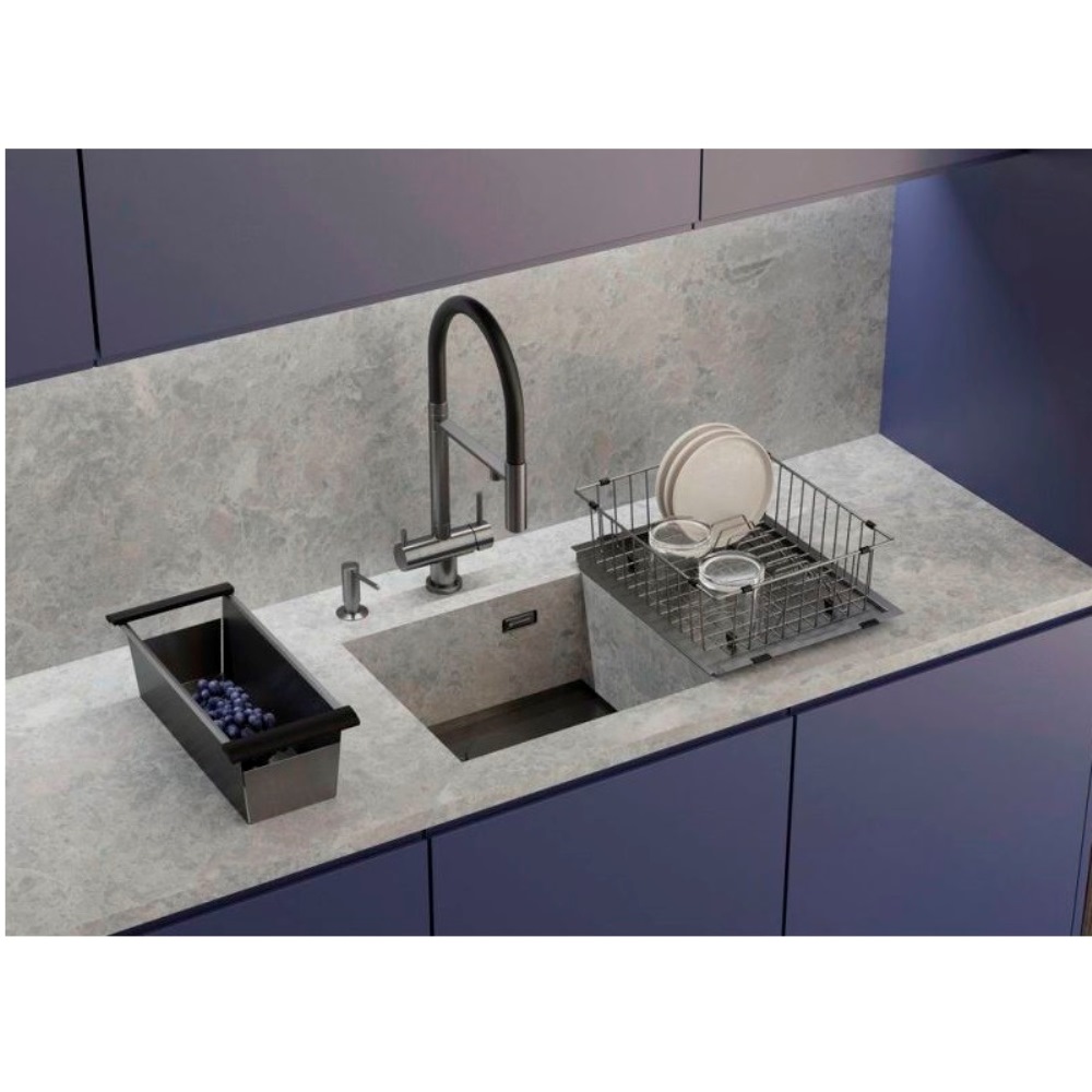 Мойка кухонная Omoikiri из коллекции Kasen 49-16-INT-LG имеет размеры 490х440 мм., изготовлена из нержавеющей стали. Форма — прямоугольная, одна чаша без отверстия для смесителя. Сифон в комплекте. Ширина чаши 45. Врезной монтаж