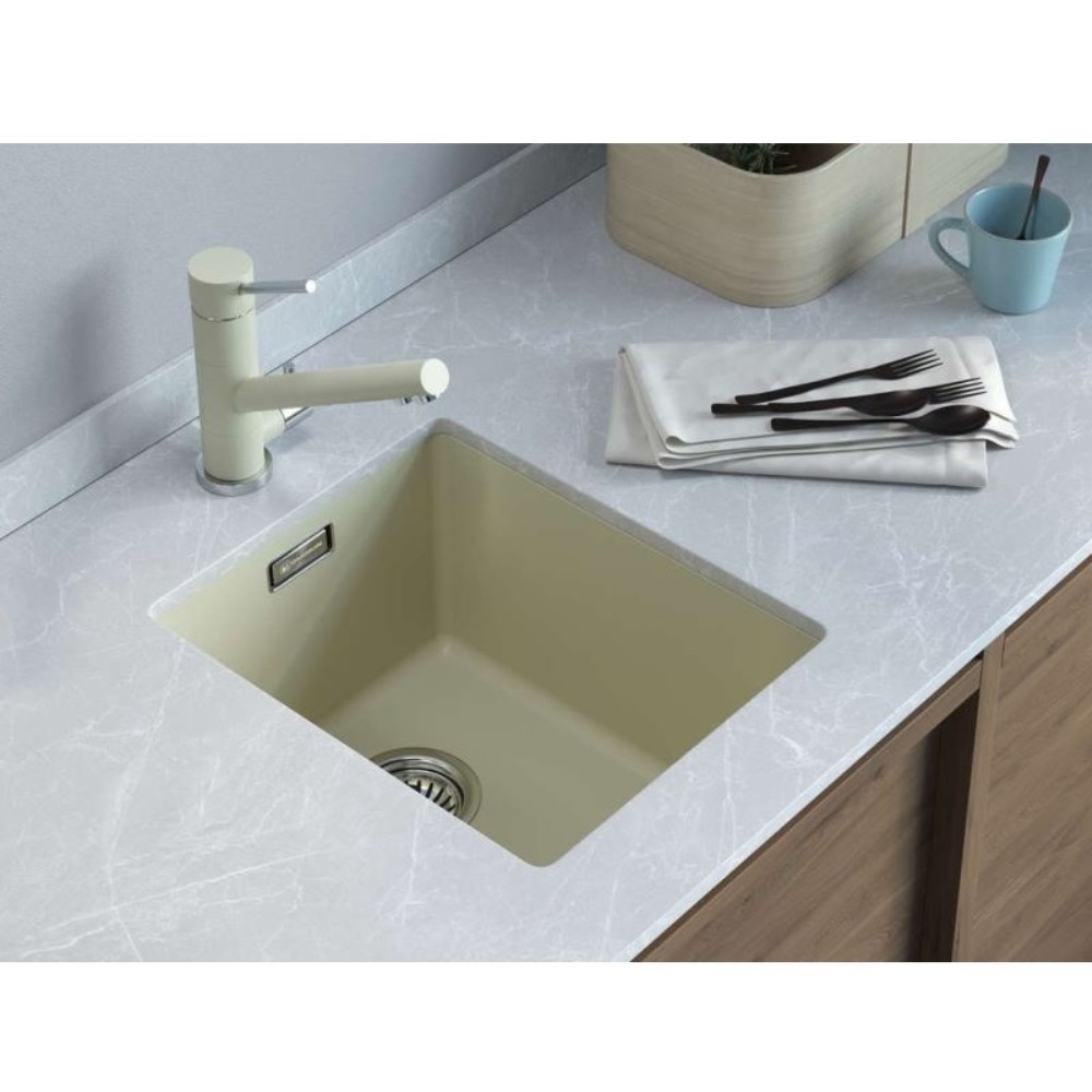 Мойка кухонная Omoikiri из коллекции Kata 34-U-BE имеет размеры 340х420 мм., изготовлена из искусственного гранита. Форма — прямоугольная, одна чаша без отверстия для смесителя. Сифон в комплекте. Ширина чаши 30. Подстольный монтаж