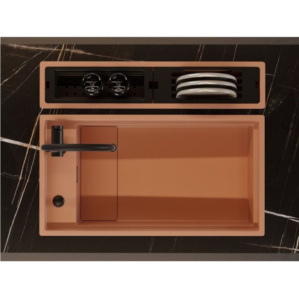 Мойка кухонная Omoikiri из коллекции Kinaru PRO 86-U/I-CN имеет размеры 860х460 мм., изготовлена из искусственной керамики. Форма — прямоугольная, одна чаша без отверстия для смесителя. Сифон в комплекте. Ширина чаши 69,4. Врезной и подстольный монтаж