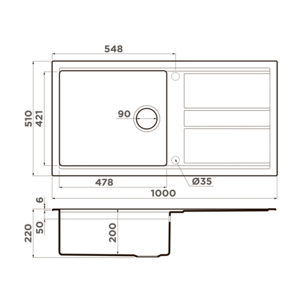 Мойка кухонная Omoikiri из коллекции Kitagawa 100-GR имеет размеры 1000х510 мм., изготовлена из искусственной керамики. Форма — прямоугольная, одна чаша без отверстия для смесителя. Сифон в комплекте. Ширина чаши 47,8. Врезной монтаж. Имеется крыло.