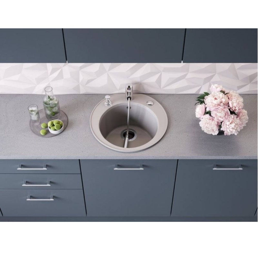 Мойка кухонная Omoikiri из коллекции Miya 50R-SA имеет размеры 505х490 мм., изготовлена из искусственного гранита. Форма — круглая, одна чаша без отверстия для смесителя. Сифон в комплекте. Ширина чаши 37,5. Врезной монтаж.