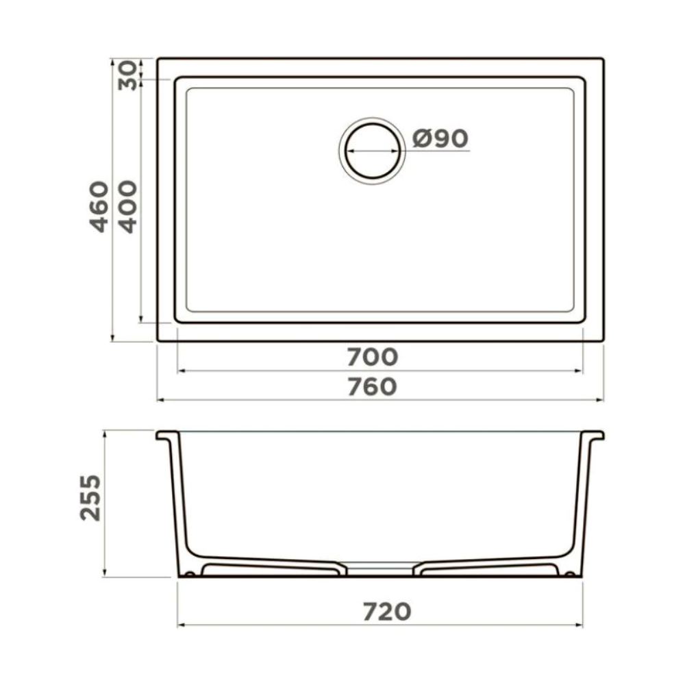 Мойка кухонная Omoikiri из коллекции Okinoshima 76-U/I-BL имеет размеры 760х460 мм., изготовлена из искусственной керамики. Форма — прямоугольная, одна чаша без отверстия для смесителя. Сифон в комплекте. Ширина чаши 70. Подстольный и врезной монтаж.