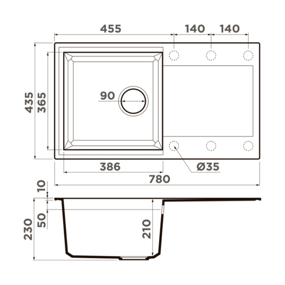 Мойка кухонная Omoikiri из коллекции Sakaime 78-BL имеет размеры 780х435 мм., изготовлена из искусственного гранита. Форма — прямоугольная, одна чаша без отверстия для смесителя. Сифон в комплекте. Ширина чаши 38,6. Врезной монтаж. Имеется крыло.