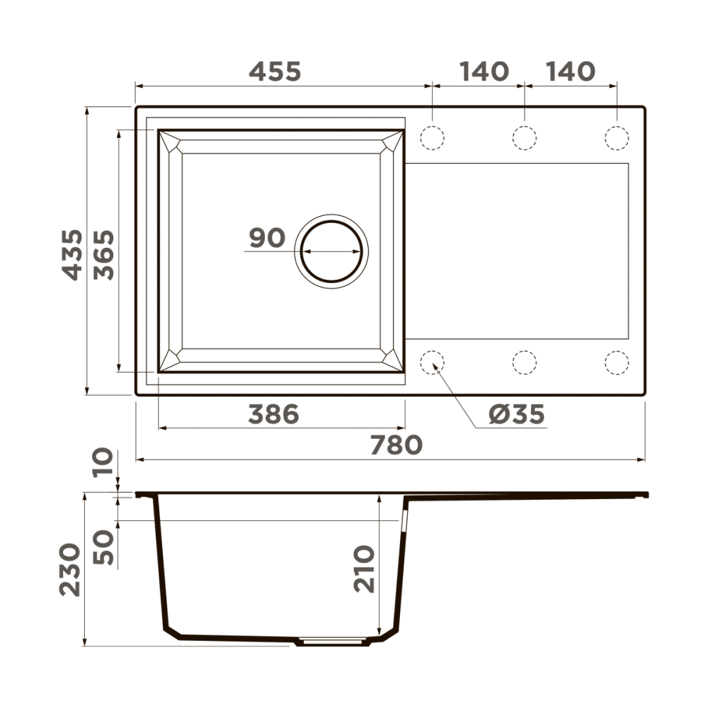 Мойка кухонная Omoikiri из коллекции Sakaime 78-GR имеет размеры 780х435 мм., изготовлена из искусственного гранита. Форма — прямоугольная, одна чаша без отверстия для смесителя. Сифон в комплекте. Ширина чаши 49. Врезной монтаж.