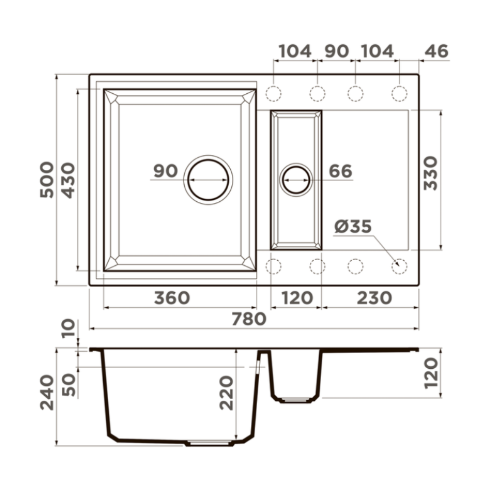 Мойка кухонная Omoikiri из коллекции Sakaime 78-2-DC имеет размеры 780х500 мм., изготовлена из искусственного гранита. Форма — прямоугольная, одна чаша без отверстия для смесителя. Сифон в комплекте. Ширина чаши 36. Врезной монтаж. Имеется дополнительная чаша и крыло.