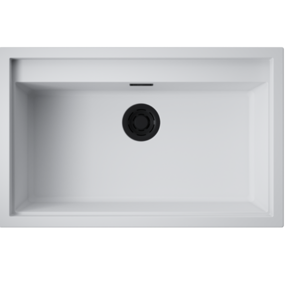 Мойка кухонная Omoikiri из коллекции Sintesi 79-WH имеет размеры 790х500 мм., изготовлена из искусственной керамики. Форма — прямоугольная, одна чаша без отверстия для смесителя. Сифон в комплекте. Ширина чаши 71. Врезной монтаж