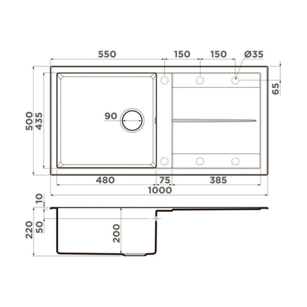 Мойка кухонная Omoikiri из коллекции Sumi 100A-GR имеет размеры 1000х500 мм., изготовлена из искусственной керамики. Форма — прямоугольная, одна чаша без отверстия для смесителя. Сифон в комплекте. Ширина чаши 48. Врезной монтаж. Имеется крыло.