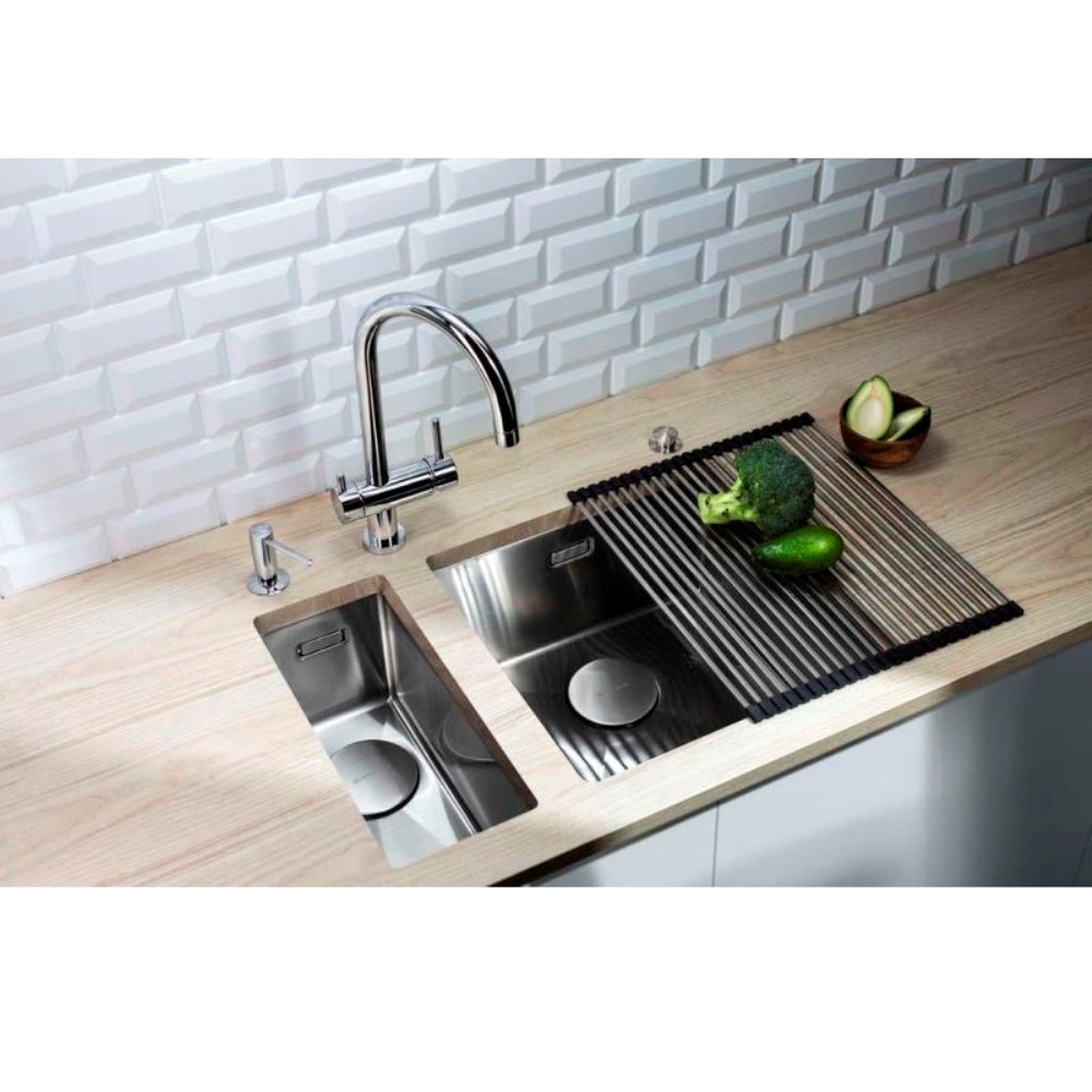Мойка кухонная Omoikiri из коллекции Taki 20-U/IF-LG имеет размеры 200х440 мм., изготовлена из нержавеющей стали. Форма — прямоугольная, одна чаша без отверстия для смесителя. Сифон в комплекте. Ширина чаши 16. Подстольный и врезной монтаж, монтаж вровень.