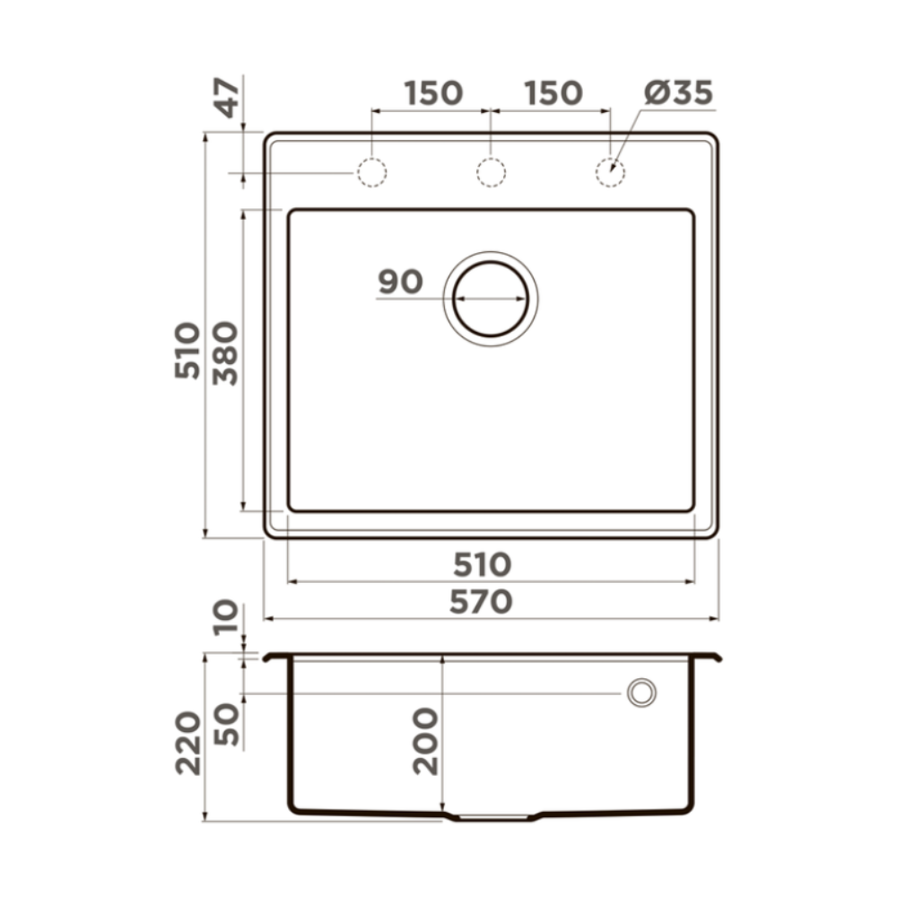 Мойка кухонная Omoikiri из коллекции Tedori 57-SA имеет размеры 570х510 мм., изготовлена из искусственного гранита. Форма — прямоугольная, одна чаша без отверстия для смесителя. Сифон в комплекте. Ширина чаши 51. Врезной монтаж.