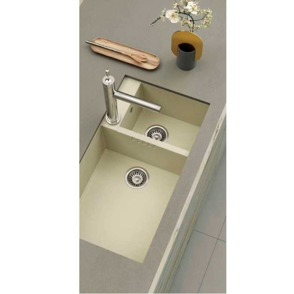 Мойка кухонная Omoikiri из коллекции Tedori 85-2-U-SA имеет размеры 850х465 мм., изготовлена из искусственного гранита. Форма — прямоугольная, одна чаша без отверстия для смесителя. Сифон в комплекте. Ширина чаши 52,5. Подстольный монтаж. Имеется дополнительная чаша.