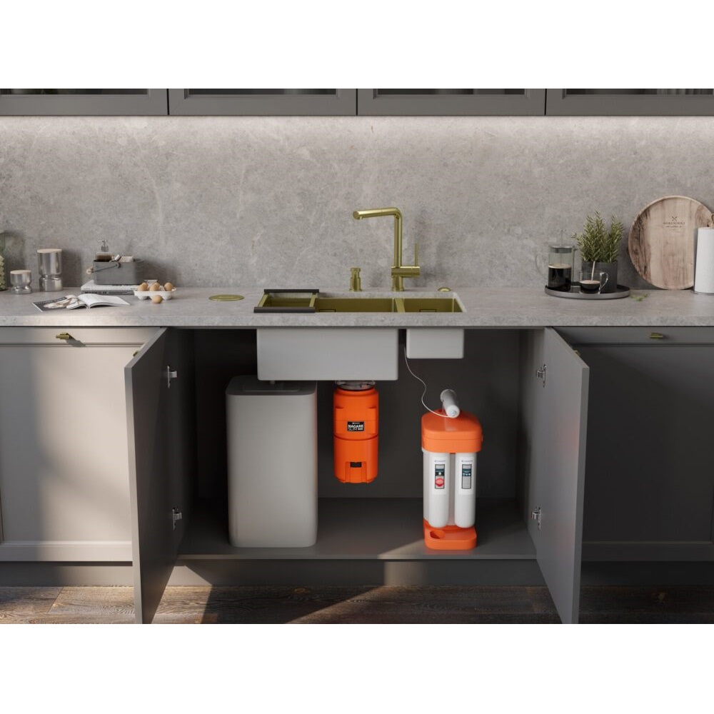 Смеситель для кухни Omoikiri Akashi оснащен рычажным управлением для регулировки температуры и напора воды. Горизонтальный монтаж на 1 отверстие. Вытяжной излив 202 мм.