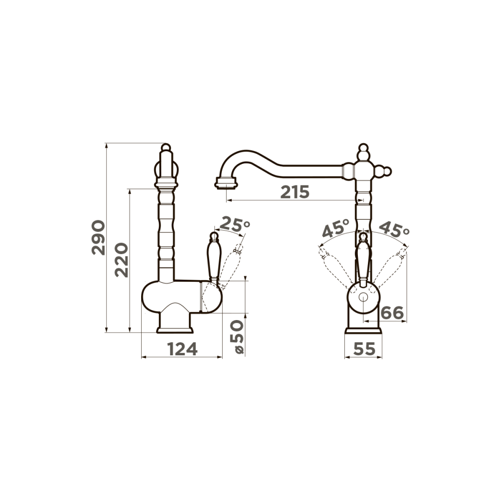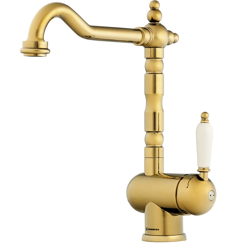 Смеситель для кухни Omoikiri Kyoto оснащен рычажным управлением для регулировки температуры и напора воды. Горизонтальный монтаж на 1 отверстие. Поворотный излив 215 мм.