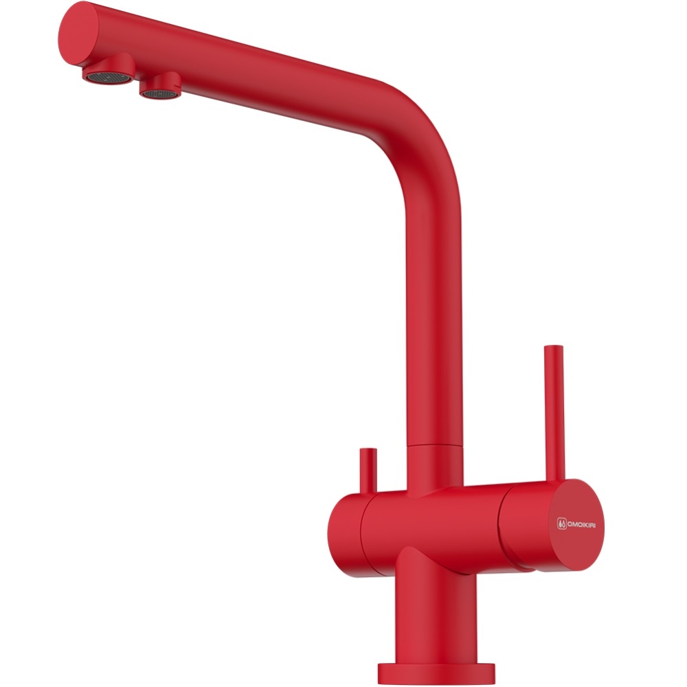 Смеситель для кухни Omoikiri Nagano с подключением фильтра оснащен рычажным управлением для регулировки температуры и напора воды. Горизонтальный монтаж на 1 отверстие. Поворотный излив 176 мм.
