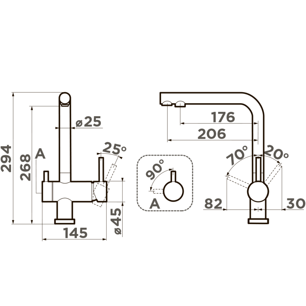 Смеситель для кухни Omoikiri Nagano с подключением фильтра оснащен рычажным управлением для регулировки температуры и напора воды. Горизонтальный монтаж на 1 отверстие. Поворотный излив 176 мм. Фильтр для очистки воды Omoikiri Pure Drop Lite 4998028 в комплекте.