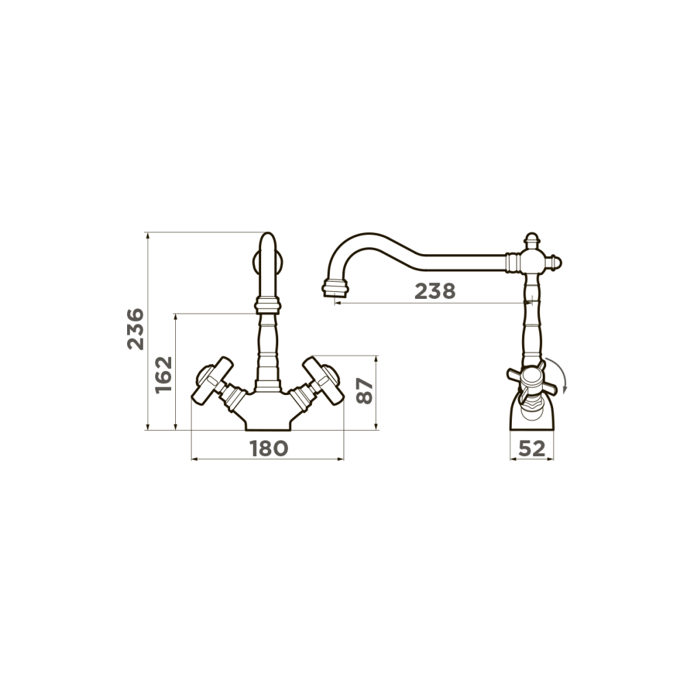 Смеситель для кухни Omoikiri Tokigawa оснащен рычажным управлением для регулировки температуры и напора воды. Горизонтальный монтаж на 1 отверстие. Поворотный излив 238 мм.