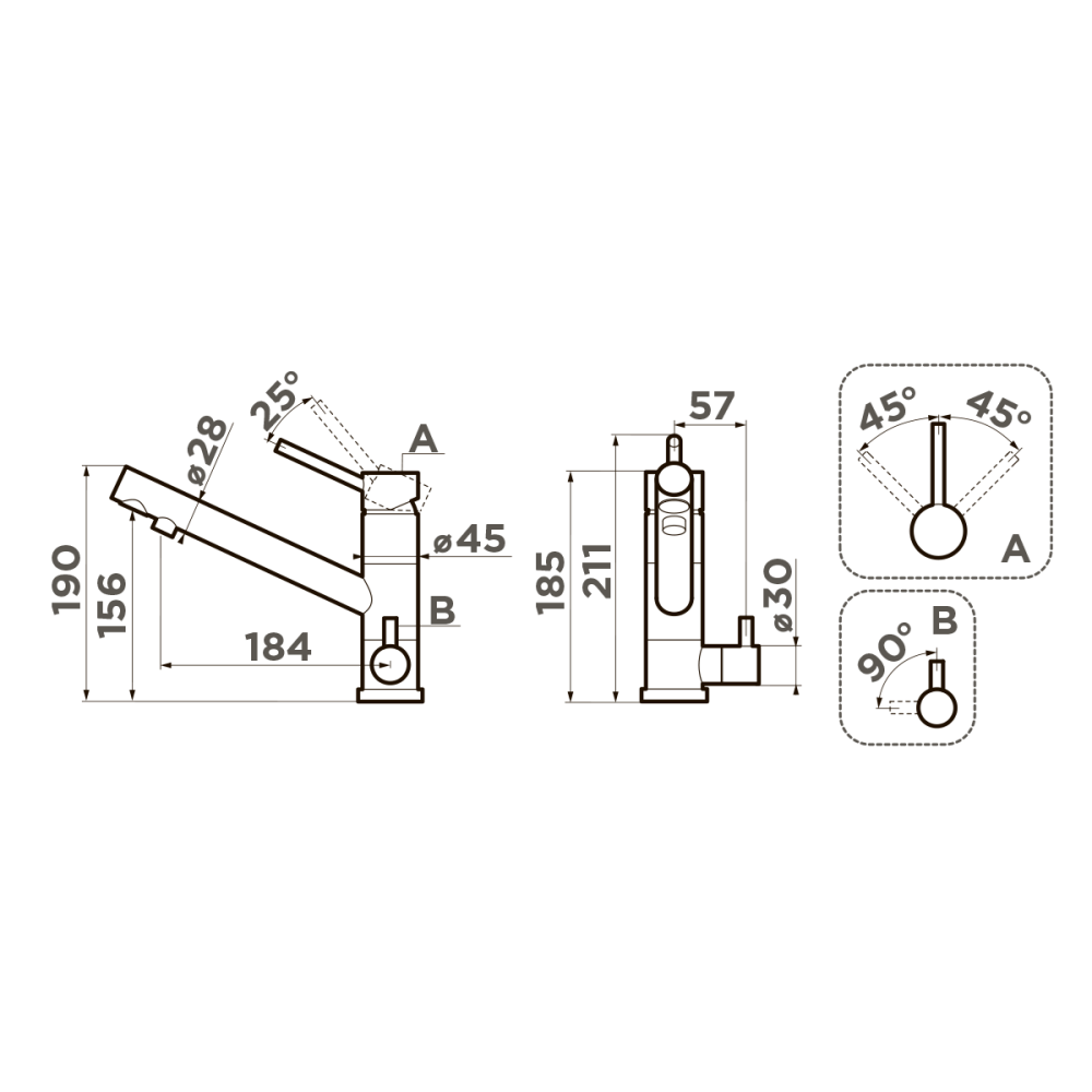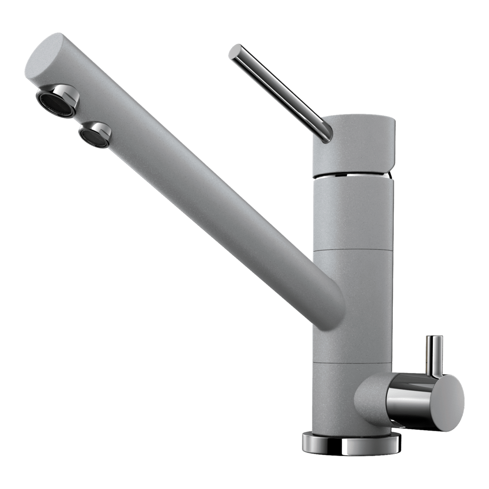 Смеситель для кухни Omoikiri Tonami с подключением фильтра оснащен рычажным управлением для регулировки температуры и напора воды. Горизонтальный монтаж на 1 отверстие. Поворотный излив 184 мм.