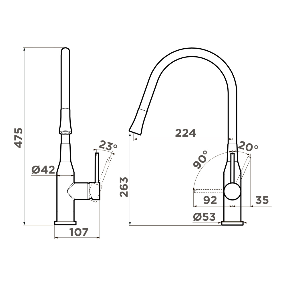 Смеситель для кухни Omoikiri Yatomi оснащен рычажным управлением для регулировки температуры и напора воды. Горизонтальный монтаж на 1 отверстие. Гибкий излив 224 мм.